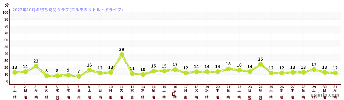 • エルモのリトル・ドライブ$B$N(B2022年10月01日のの一日平均待ち時間