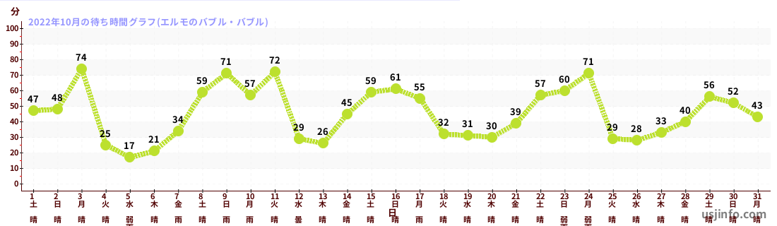 • エルモのバブル・バブル$B$N(B2022年10月01日のの一日平均待ち時間