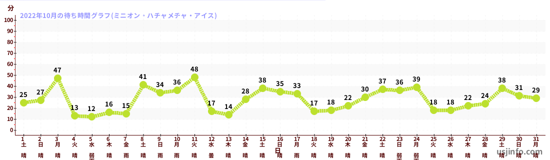 • ミニオン・ハチャメチャ・アイス$B$N(B2022年10月01日のの一日平均待ち時間