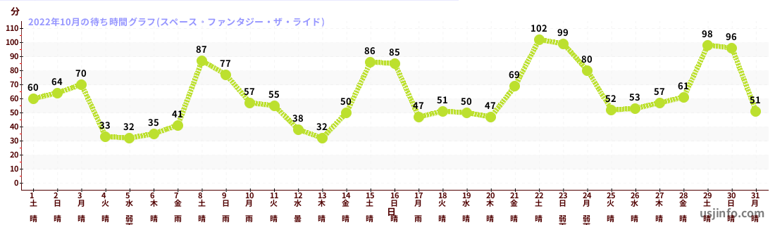 • スペース・ファンタジー・ザ・ライド$B$N(B2022年10月01日のの一日平均待ち時間