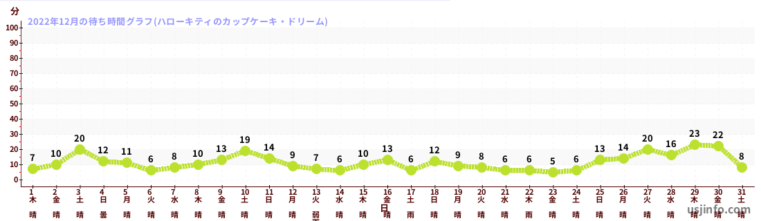 • ハローキティのカップケーキ・ドリーム$B$N(B2022年12月01日のの一日平均待ち時間