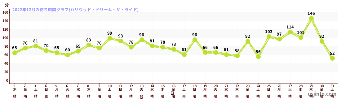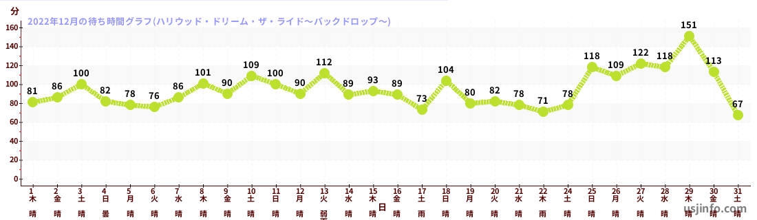 • ハリウッド・ドリーム・ザ・ライド$B$N(B2022年12月01日のの一日平均待ち時間