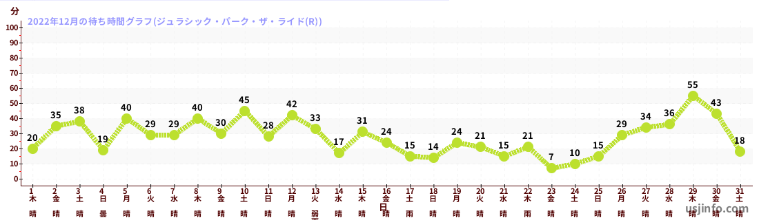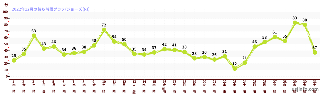 • ジョーズ(R)$B$N(B2022年12月01日のの一日平均待ち時間