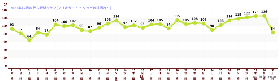 • マリオカート ~クッパの挑戦状~$B$N(B2022年12月01日のの一日平均待ち時間