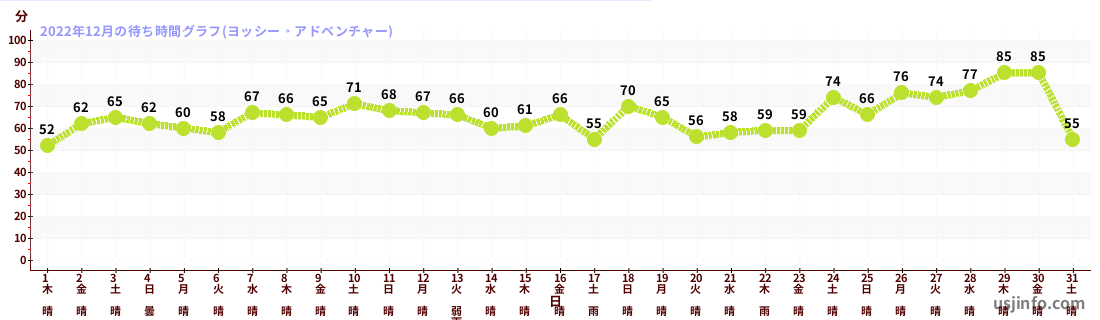 • ヨッシー・アドベンチャー$B$N(B2022年12月01日のの一日平均待ち時間