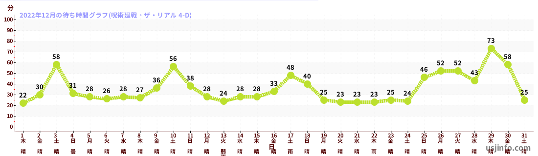 • 呪術廻戦・ザ・リアル 4-D$B$N(B2022年12月01日のの一日平均待ち時間