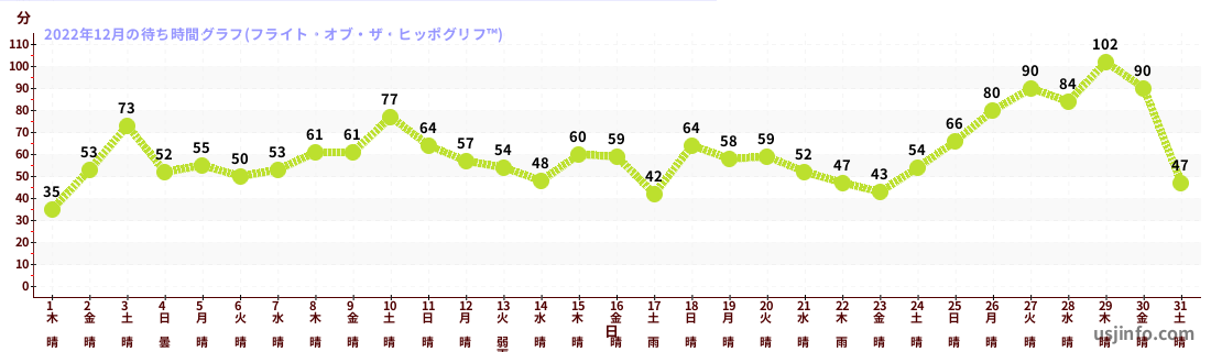 • フライト・オブ・ザ・ヒッポグリフ™$B$N(B2022年12月01日のの一日平均待ち時間