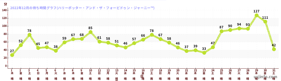 • ハリーポッター・アンド・ザ・フォービドゥン・ジャーニー™$B$N(B2022年12月01日のの一日平均待ち時間