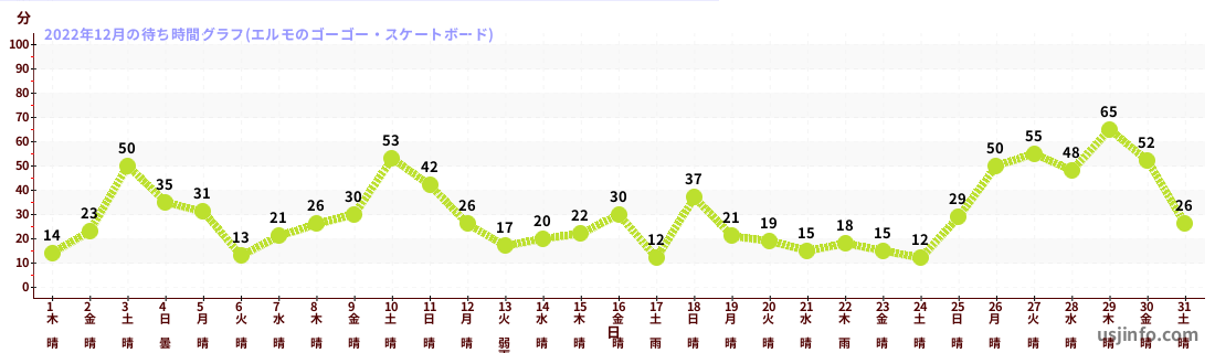 • エルモのゴーゴー・スケートボード$B$N(B2022年12月01日のの一日平均待ち時間