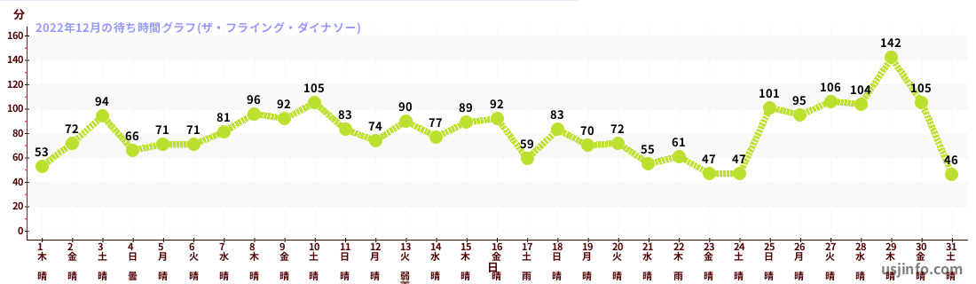 • ザ・フライング・ダイナソー$B$N(B2022年12月01日のの一日平均待ち時間