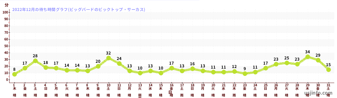 • ビッグバードのビックトップ・サーカス$B$N(B2022年12月01日のの一日平均待ち時間