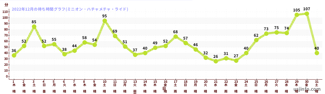 • ミニオン・ハチャメチャ・ライド$B$N(B2022年12月01日のの一日平均待ち時間
