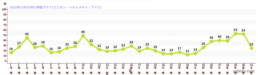 • ミニオン・ハチャメチャ・アイス$B$N(B2022年12月01日のの一日平均待ち時間