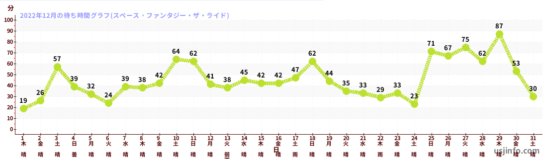 • スペース・ファンタジー・ザ・ライド$B$N(B2022年12月01日のの一日平均待ち時間