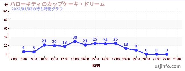 • ハローキティのカップケーキ・ドリーム$B$N(B2022年01月03日の待ち時間