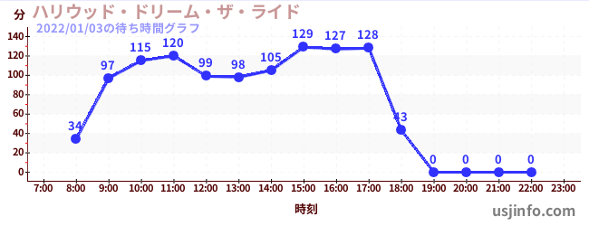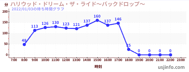 • ハリウッド・ドリーム・ザ・ライド〜バックドロップ〜$B$N(B2022年01月03日の待ち時間