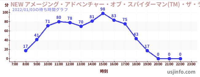• NEW アメージング・アドベンチャー・オブ・スパイダーマン(TM)・ザ・ライド 4K3D$B$N(B2022年01月03日の待ち時間