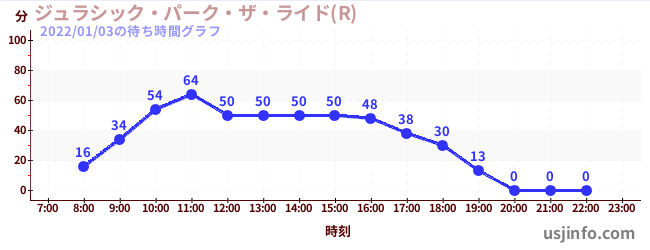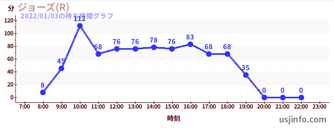 • ジョーズ(R)$B$N(B2022年01月03日の待ち時間