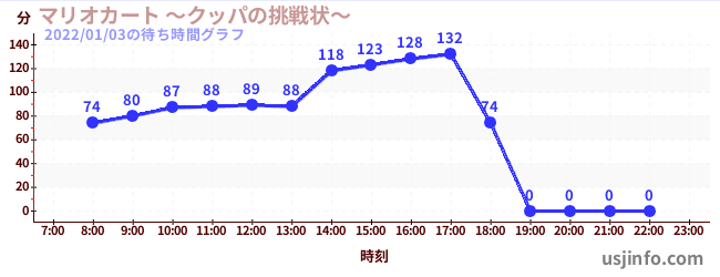 • マリオカート ~クッパの挑戦状~$B$N(B2022年01月03日の待ち時間