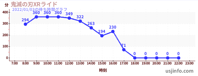 • 鬼滅の刃XRライド$B$N(B2022年01月03日の待ち時間