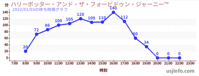 • ハリーポッター・アンド・ザ・フォービドゥン・ジャーニー™$B$N(B2022年01月03日の待ち時間
