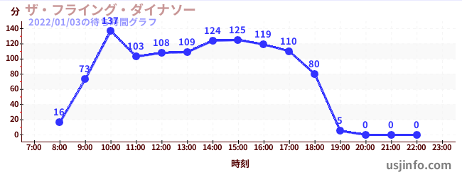 • ザ・フライング・ダイナソー$B$N(B2022年01月03日の待ち時間