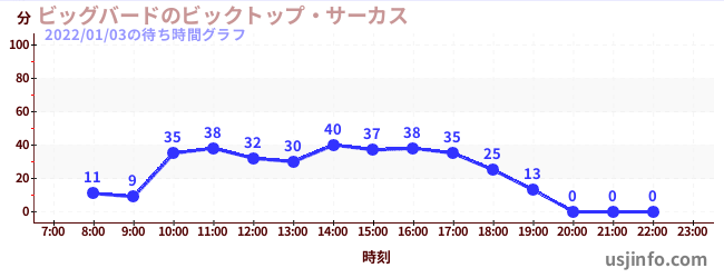• ビッグバードのビックトップ・サーカス$B$N(B2022年01月03日の待ち時間