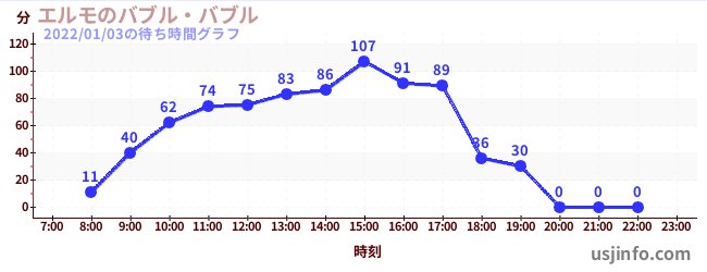 • エルモのバブル・バブル$B$N(B2022年01月03日の待ち時間