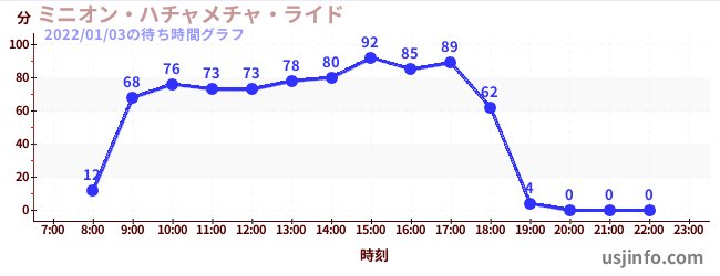 • ミニオン・ハチャメチャ・ライド$B$N(B2022年01月03日の待ち時間