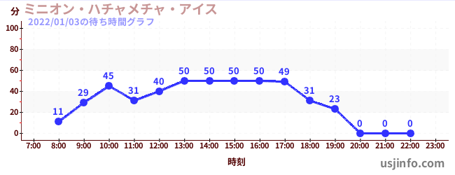 • ミニオン・ハチャメチャ・アイス$B$N(B2022年01月03日の待ち時間