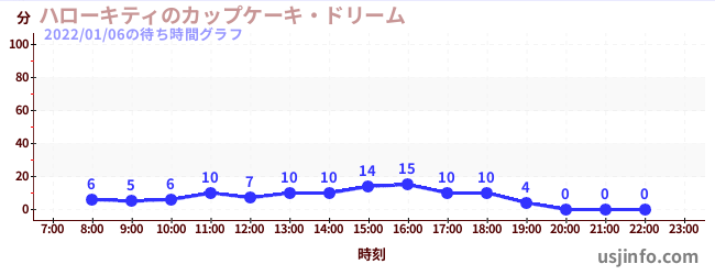 • ハローキティのカップケーキ・ドリーム$B$N(B2022年01月06日の待ち時間