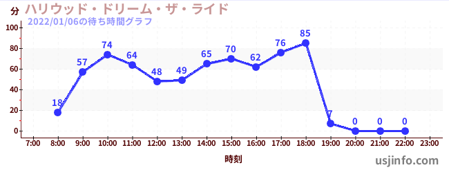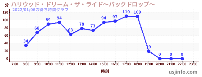 • ハリウッド・ドリーム・ザ・ライド〜バックドロップ〜$B$N(B2022年01月06日の待ち時間