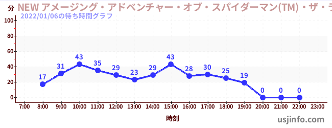 • NEW アメージング・アドベンチャー・オブ・スパイダーマン(TM)・ザ・ライド 4K3D$B$N(B2022年01月06日の待ち時間