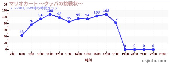 • マリオカート ~クッパの挑戦状~$B$N(B2022年01月06日の待ち時間