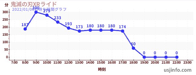 • 鬼滅の刃XRライド$B$N(B2022年01月06日の待ち時間