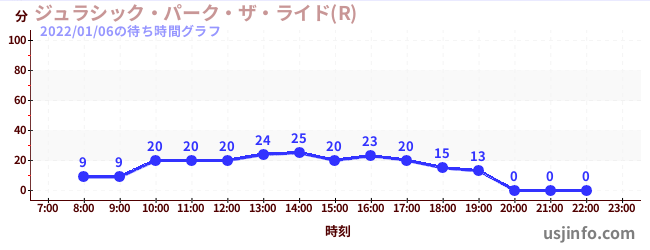 • ジュラシック・パーク・ザ・ライド(R)$B$N(B2022年01月06日の待ち時間