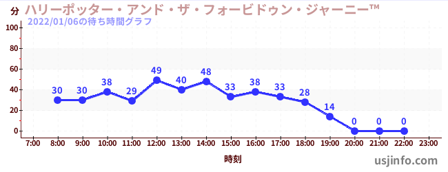 • ハリーポッター・アンド・ザ・フォービドゥン・ジャーニー™$B$N(B2022年01月06日の待ち時間