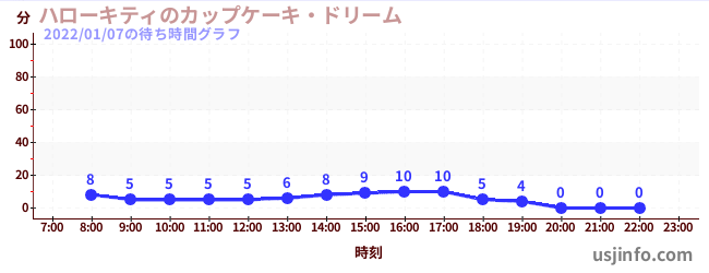 • ハローキティのカップケーキ・ドリーム$B$N(B2022年01月07日の待ち時間