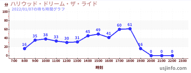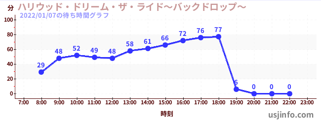 • ハリウッド・ドリーム・ザ・ライド〜バックドロップ〜$B$N(B2022年01月07日の待ち時間