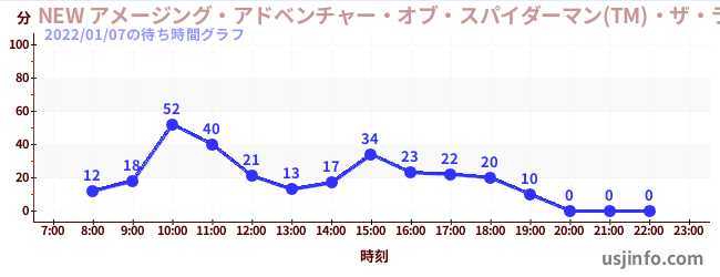 • NEW アメージング・アドベンチャー・オブ・スパイダーマン(TM)・ザ・ライド 4K3D$B$N(B2022年01月07日の待ち時間