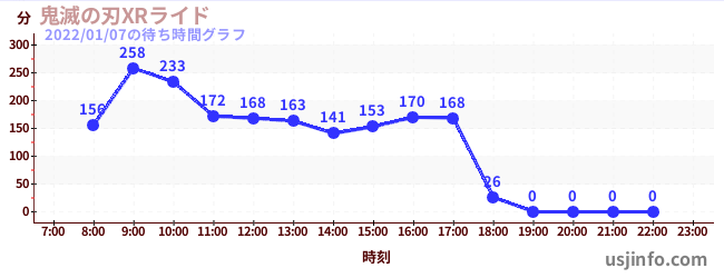 • 鬼滅の刃XRライド$B$N(B2022年01月07日の待ち時間