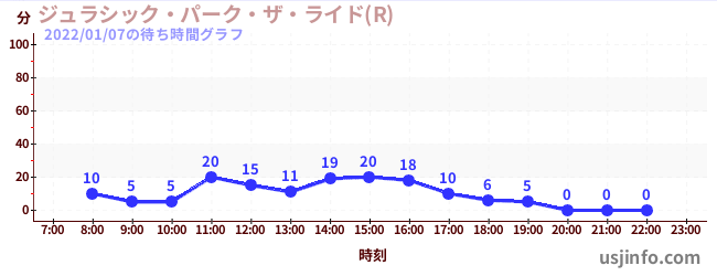 • ジュラシック・パーク・ザ・ライド(R)$B$N(B2022年01月07日の待ち時間