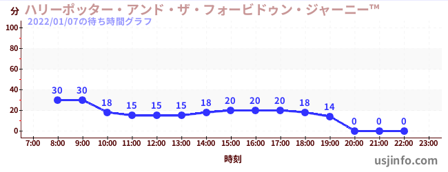 • ハリーポッター・アンド・ザ・フォービドゥン・ジャーニー™$B$N(B2022年01月07日の待ち時間