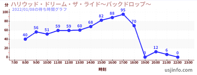 • ハリウッド・ドリーム・ザ・ライド〜バックドロップ〜$B$N(B2022年01月08日の待ち時間