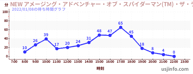 • NEW アメージング・アドベンチャー・オブ・スパイダーマン(TM)・ザ・ライド 4K3D$B$N(B2022年01月08日の待ち時間