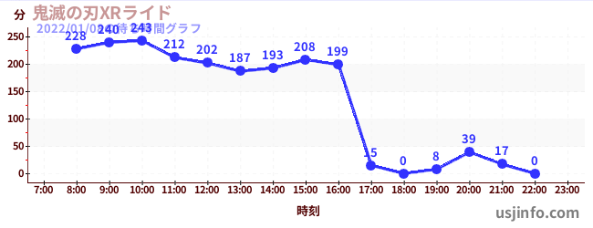• 鬼滅の刃XRライド$B$N(B2022年01月08日の待ち時間