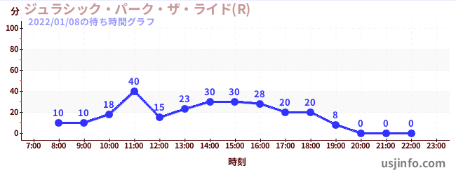 • ジュラシック・パーク・ザ・ライド(R)$B$N(B2022年01月08日の待ち時間