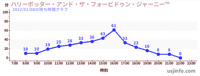 • ハリーポッター・アンド・ザ・フォービドゥン・ジャーニー™$B$N(B2022年01月08日の待ち時間