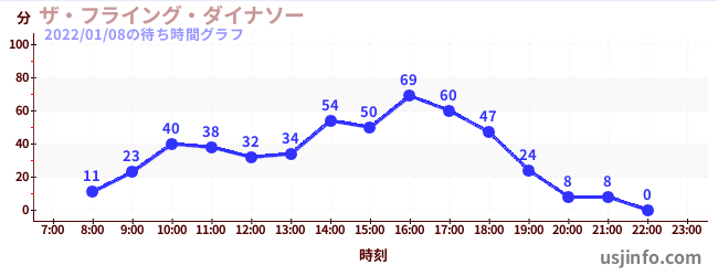 • ザ・フライング・ダイナソー$B$N(B2022年01月08日の待ち時間