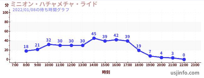 • ミニオン・ハチャメチャ・ライド$B$N(B2022年01月08日の待ち時間